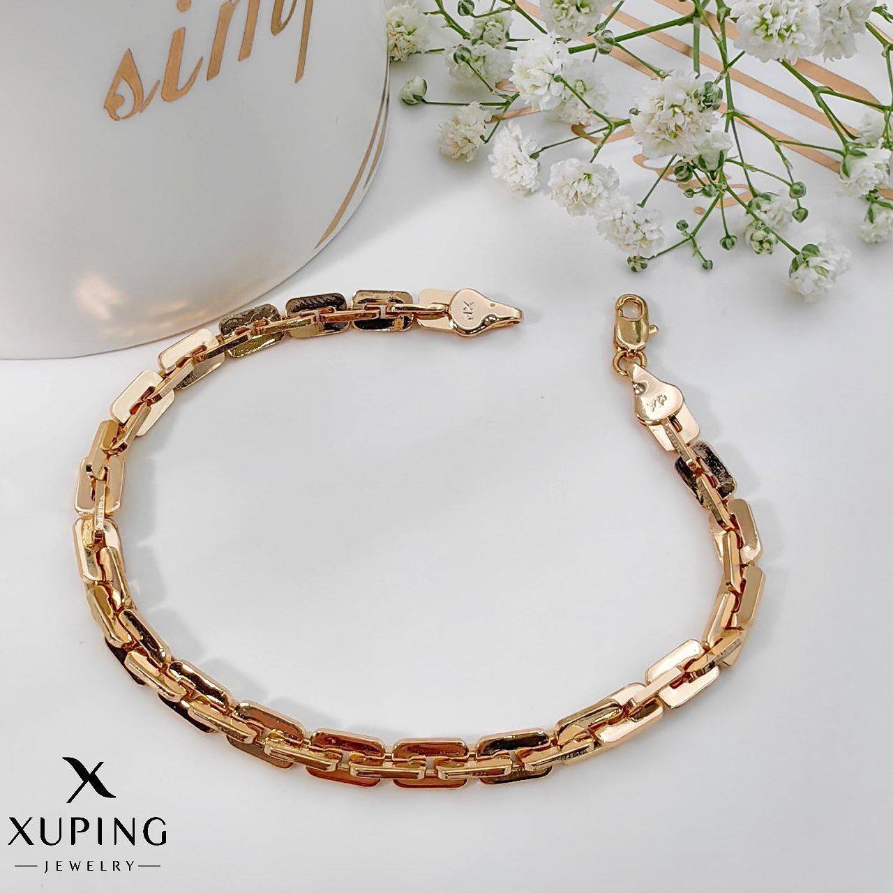 دستبند زنانه ژوپینگ طرح پلاک مستطیلی (Bar Link) نگینکاری شده | رنگ طلایی کد ۲۸۵