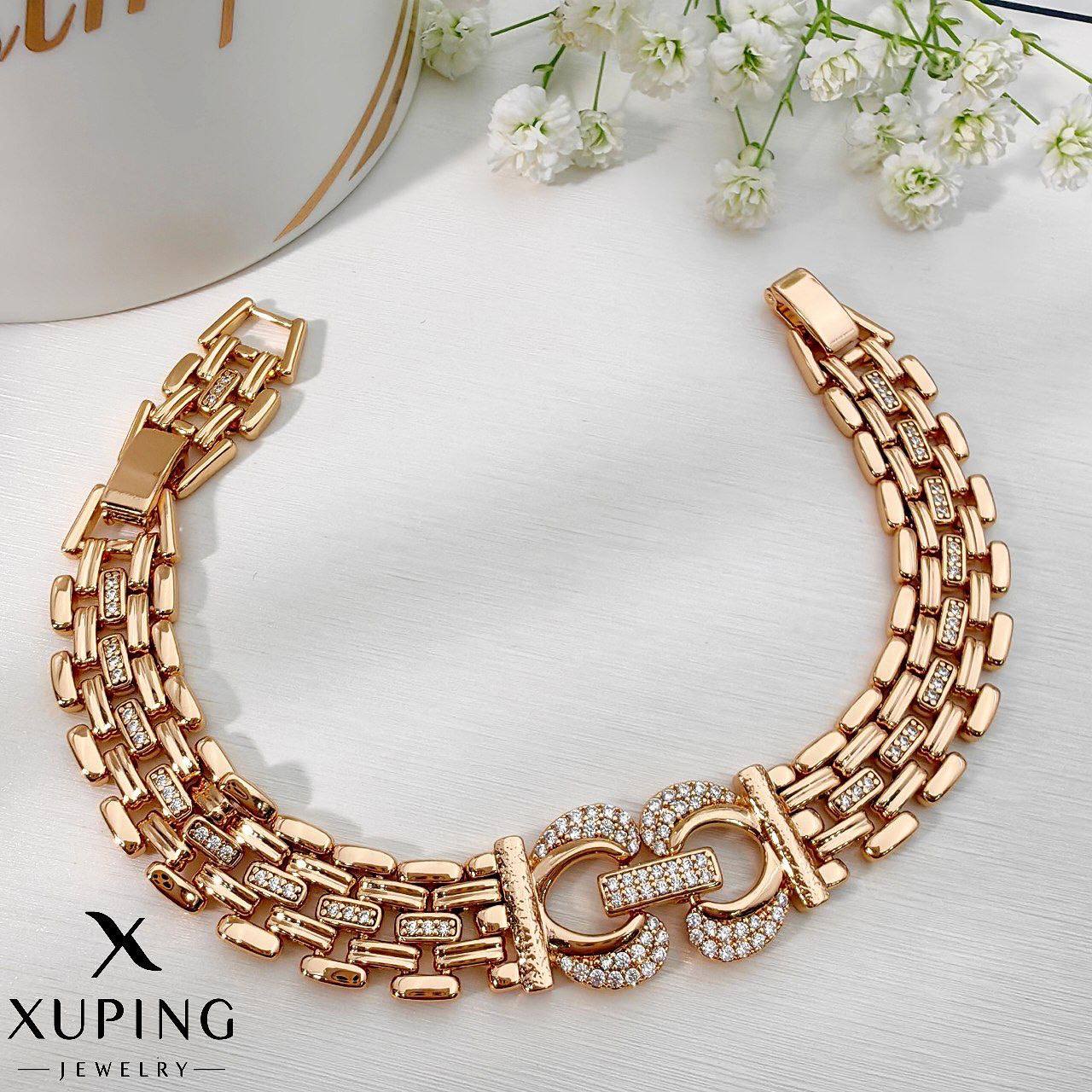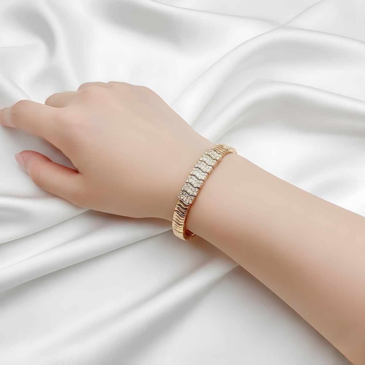 دستبند بافتی نگینی مجلسی زنانه برند ژوپینگ کد ۱۳۸