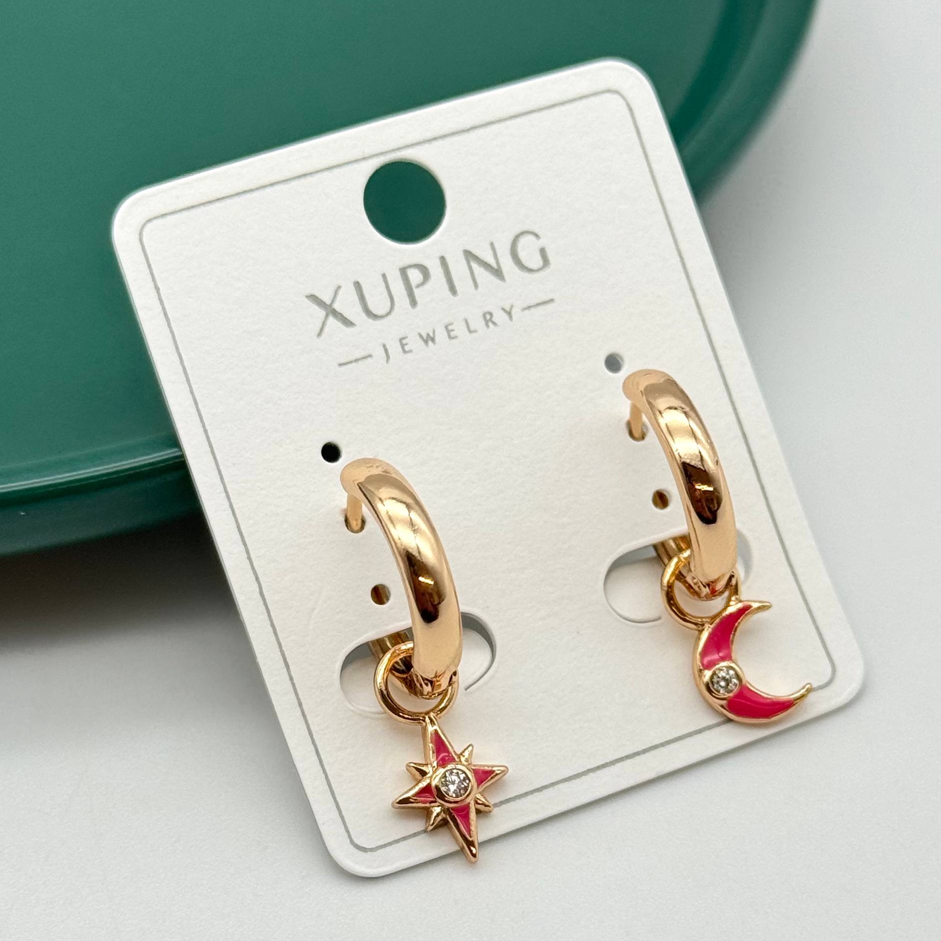 گوشواره حلقه ای ژوپینگ طرح ماه و ستاره آویزدار کد ۲۵۴