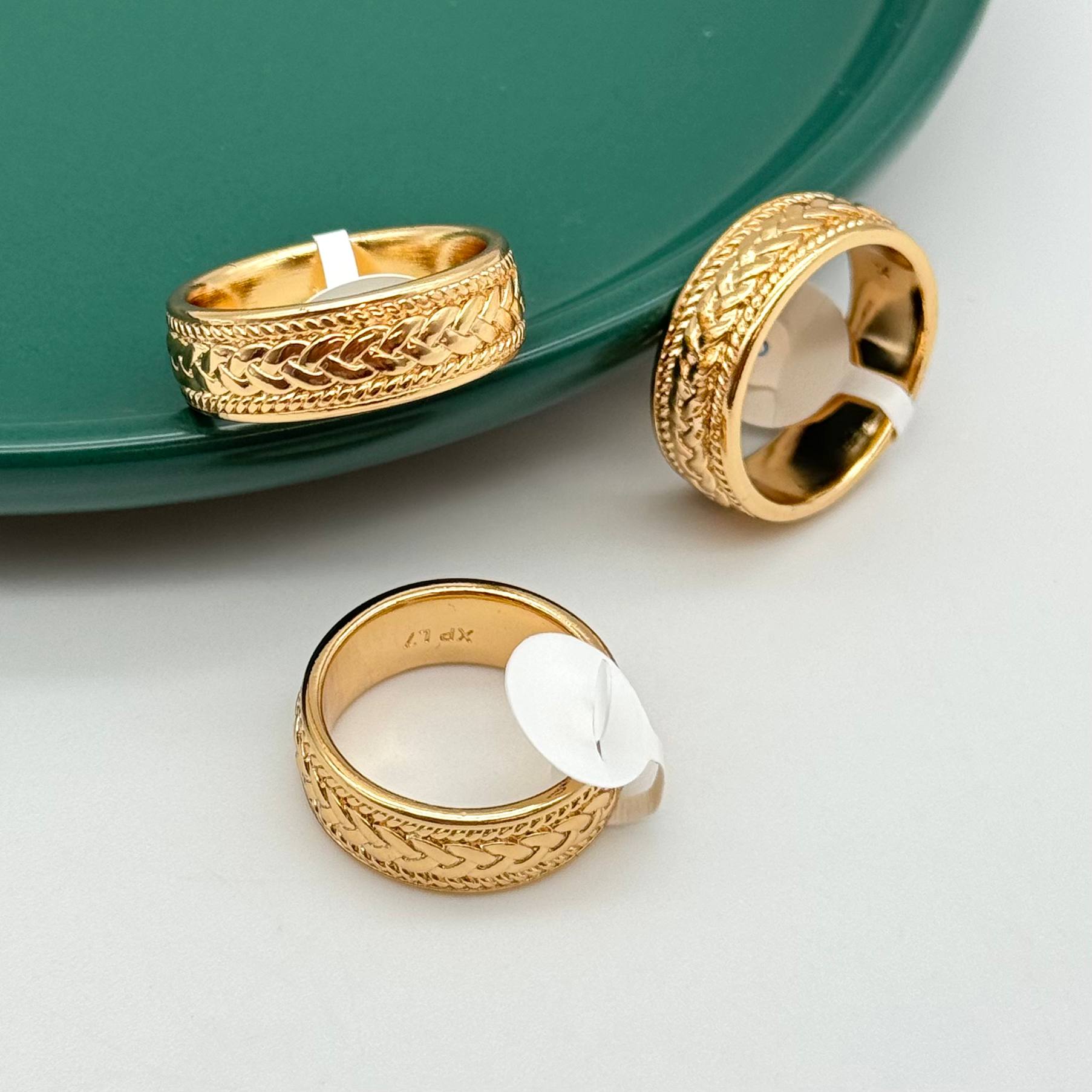 انگشتر رینگ پهن ژوپینگ طرح گیس بافت (بافت حصیری) آبکاری طلا کد ۳۲۳