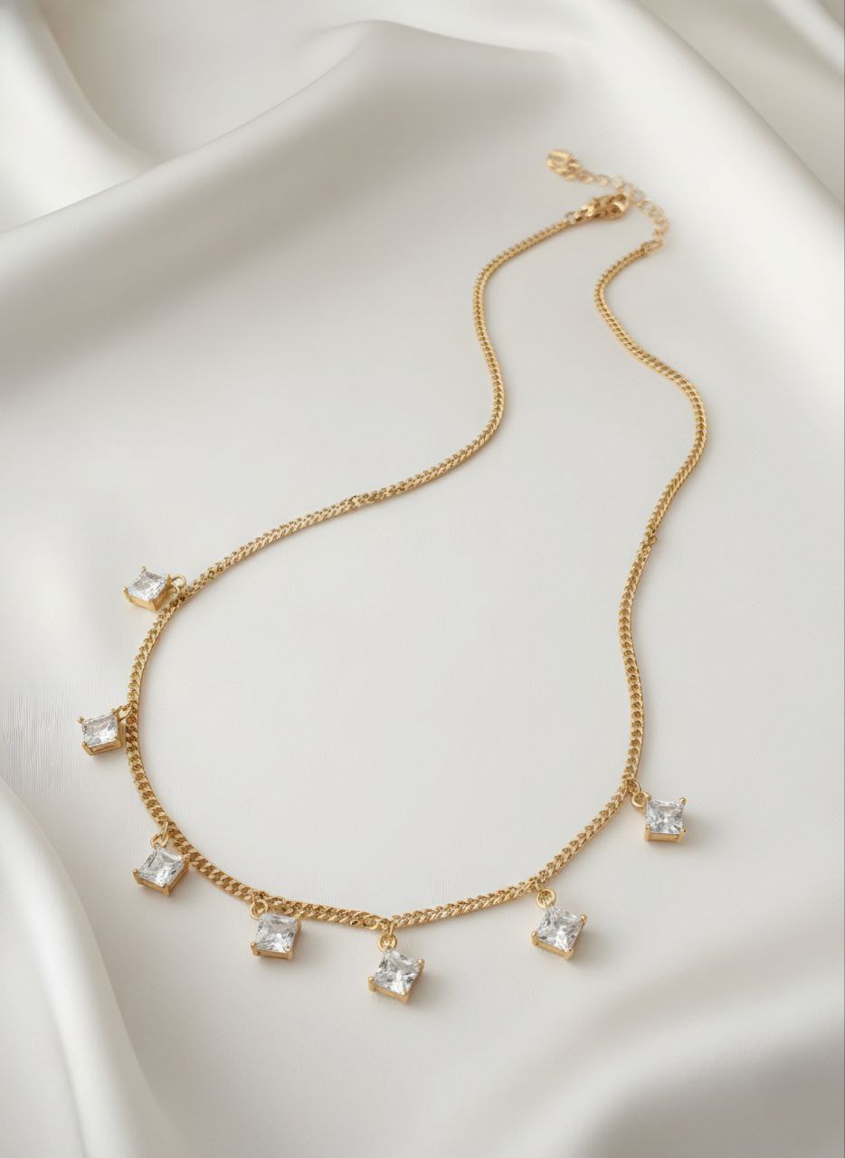گردنبند ژوپینگ مدل زنجیری با آویزهای کریستالی مربعی کد ۴۱۲