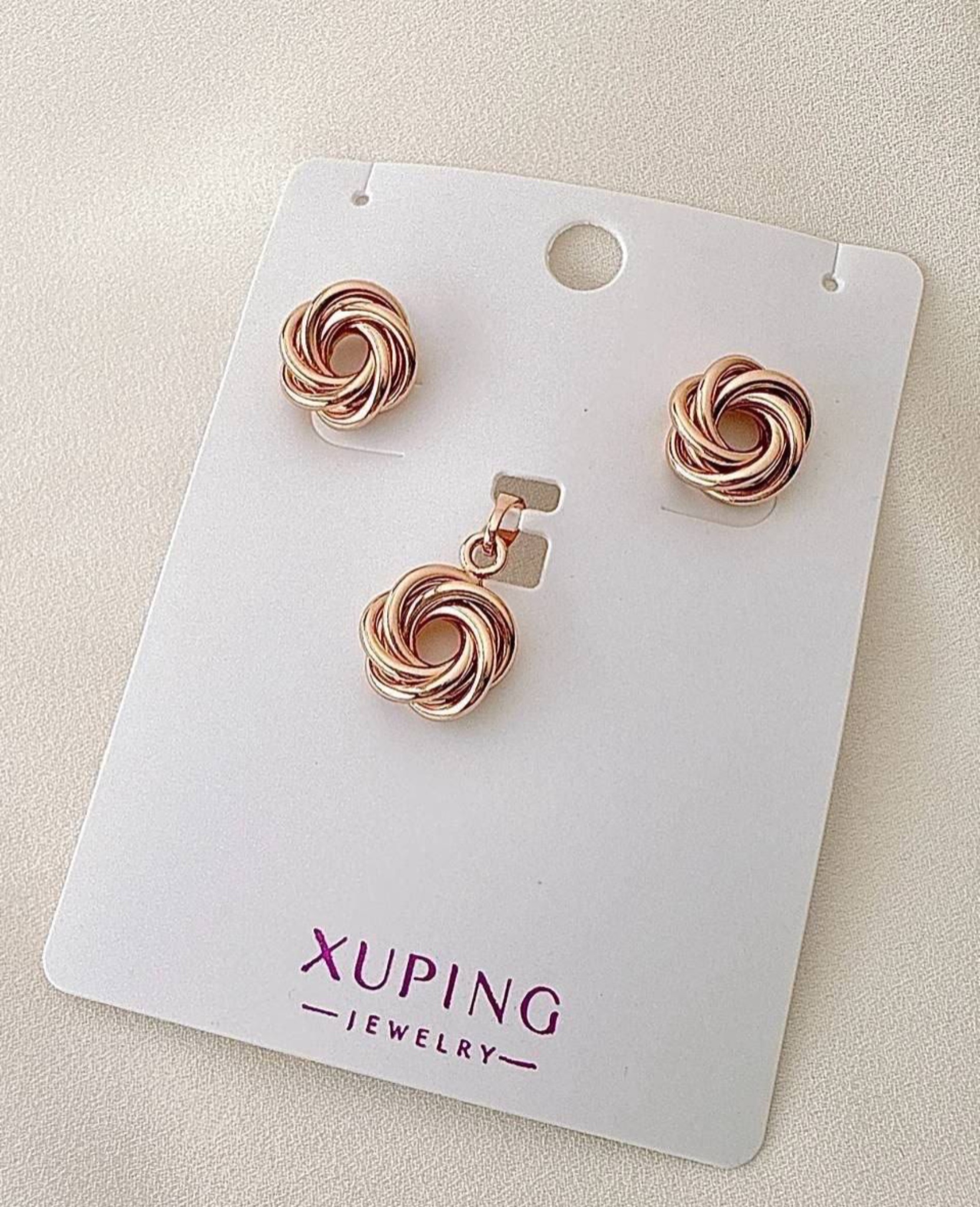 نیمست ژوپینگ طرح گره عشق بدون رنجیر (گوشواره و پلاک) کد ۴۲۰