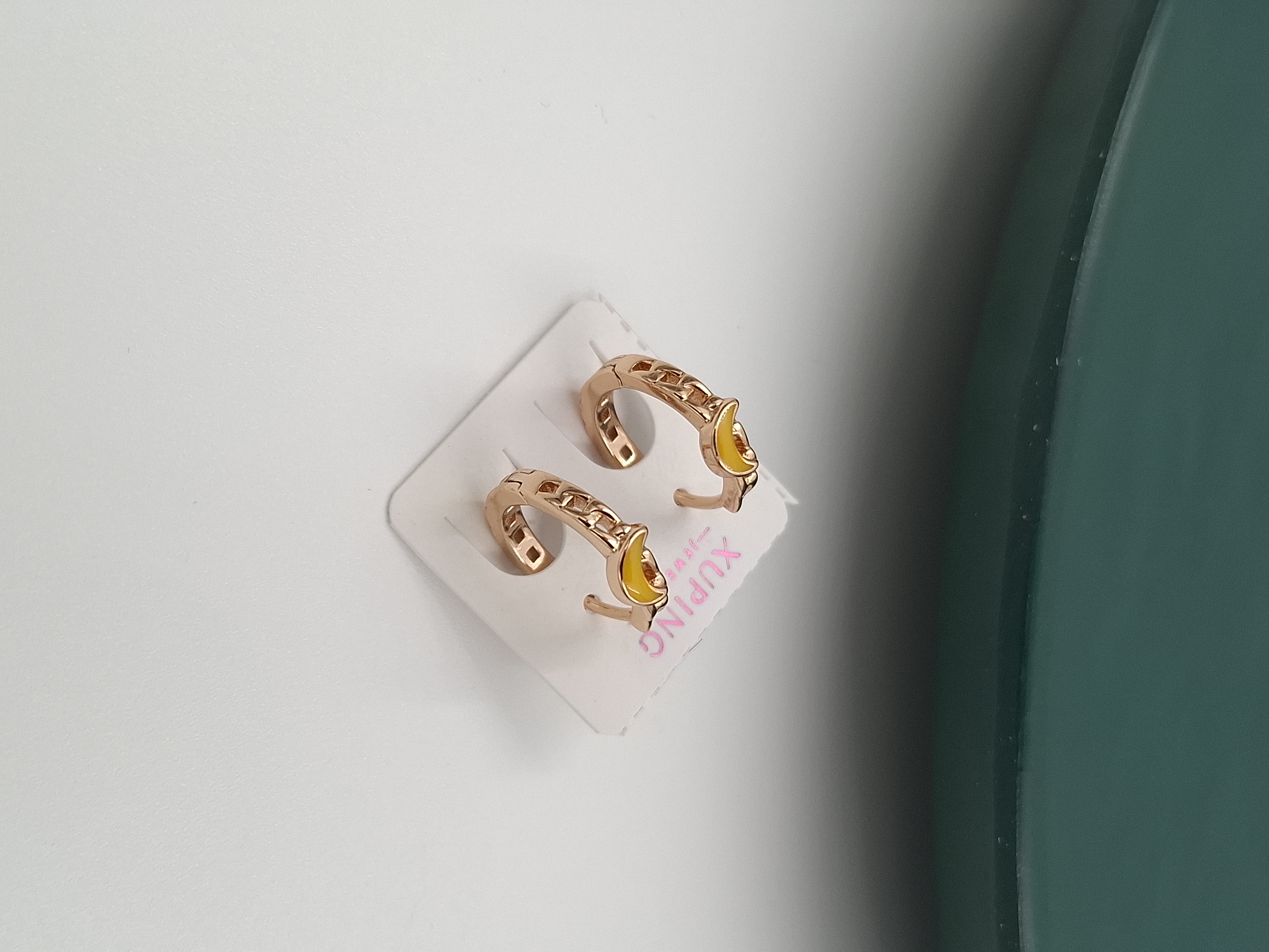 گوشواره حلقهای ژوپینگ طرح کارتیه با مینی قمری زرد کد ۸۷۴