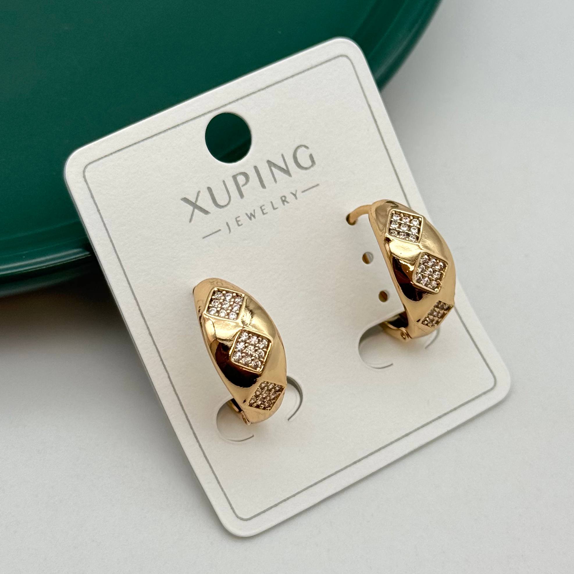 گوشواره ژوپینگ مدل حلقهای پهن با طرح لوزی نگیندار کد ۷۰۸
