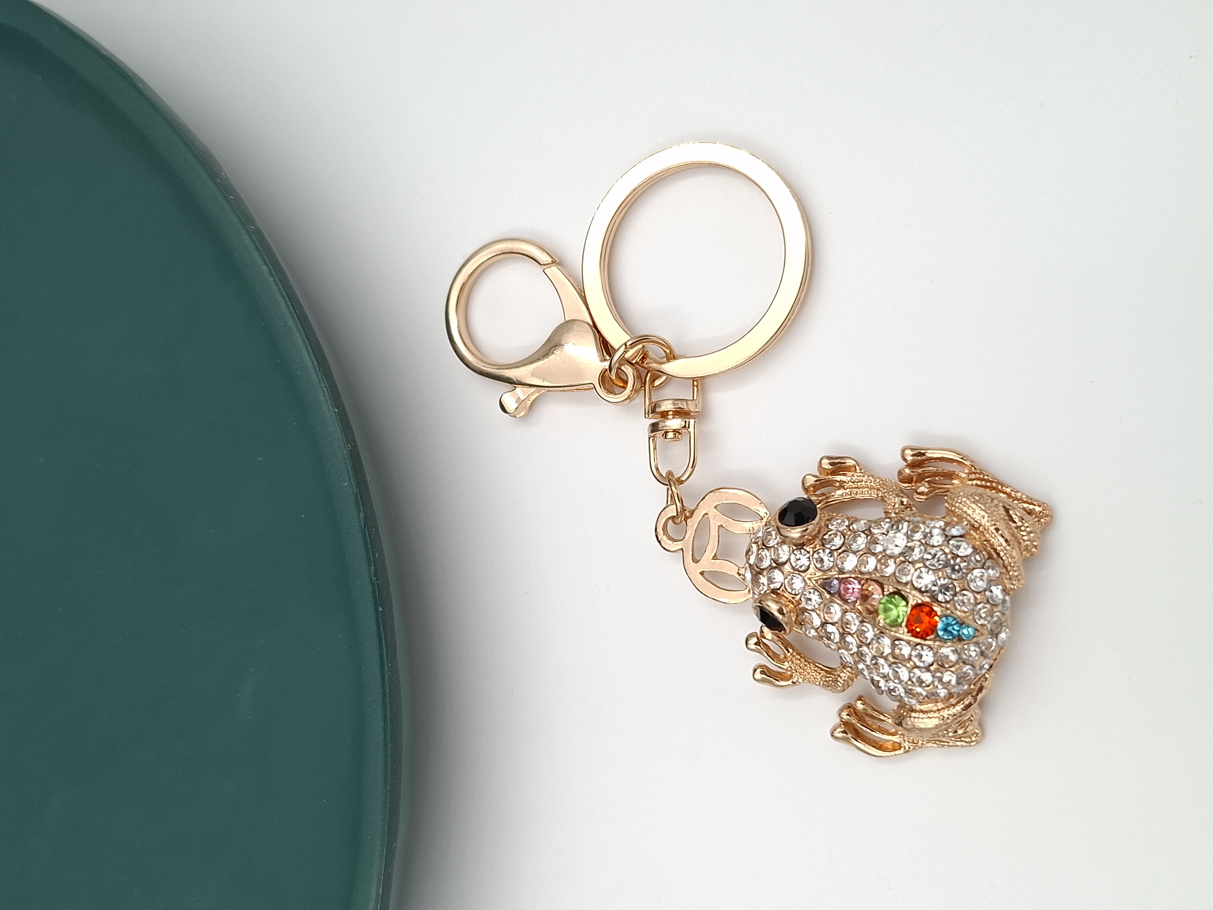 جاکلیدی طرح قورباغه نگیندار مدل کریستالی (رنگ طلایی)