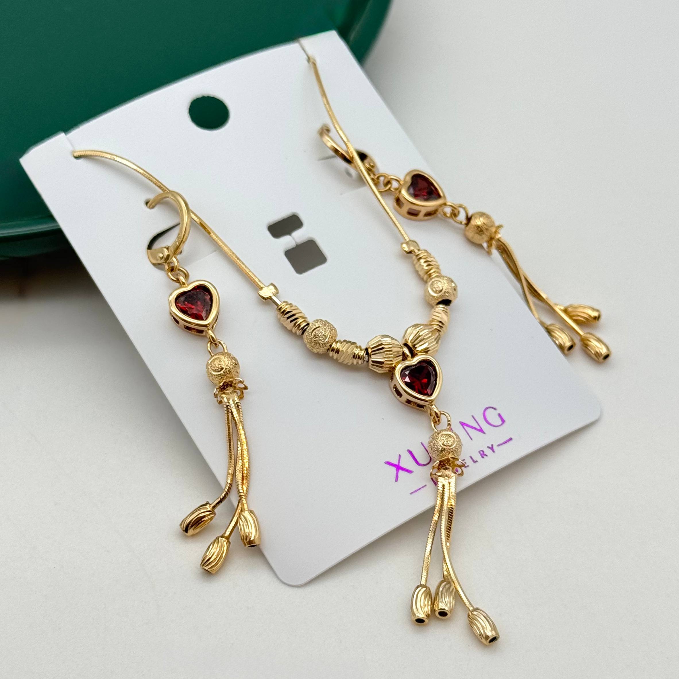 نیمست ژوپینگ طرح طلا با نگین قلبی قرمز و آویزهای خوشهای با زنجیر کد ۵۷۵