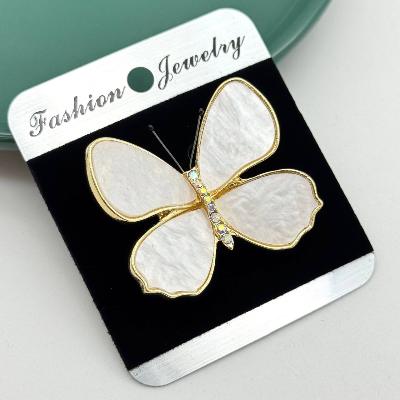 گل سینه زنانه طرح پروانه با نگینهای هفترنگ و روکش صدفی کد ۶۹۷