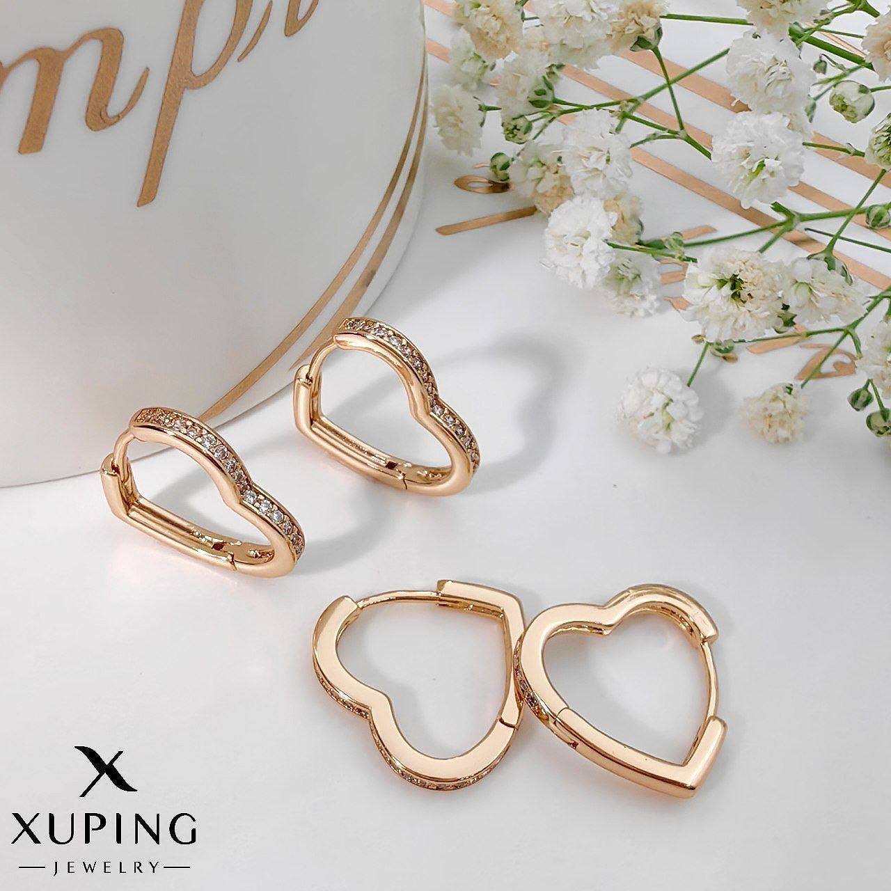 گوشواره قلبی آویز ژوپینگ (XUPING) با روکش طلا، دارای طرح توری و مروارید با نگین‌های زیرکونیا