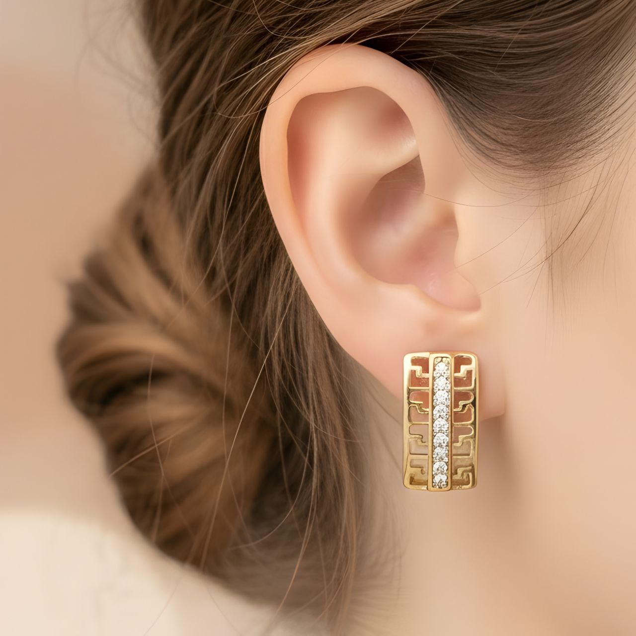 گوشواره حلقه ای طرح ورساچه مثلث نگیندار برند ژوپینگ کد ۲۳۸