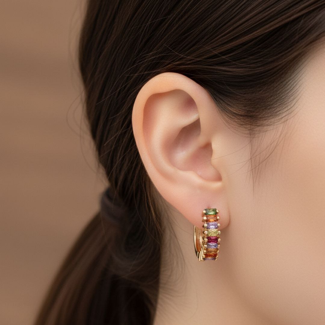 گوشواره حلقه ای نگین رنگی ژوپینگ