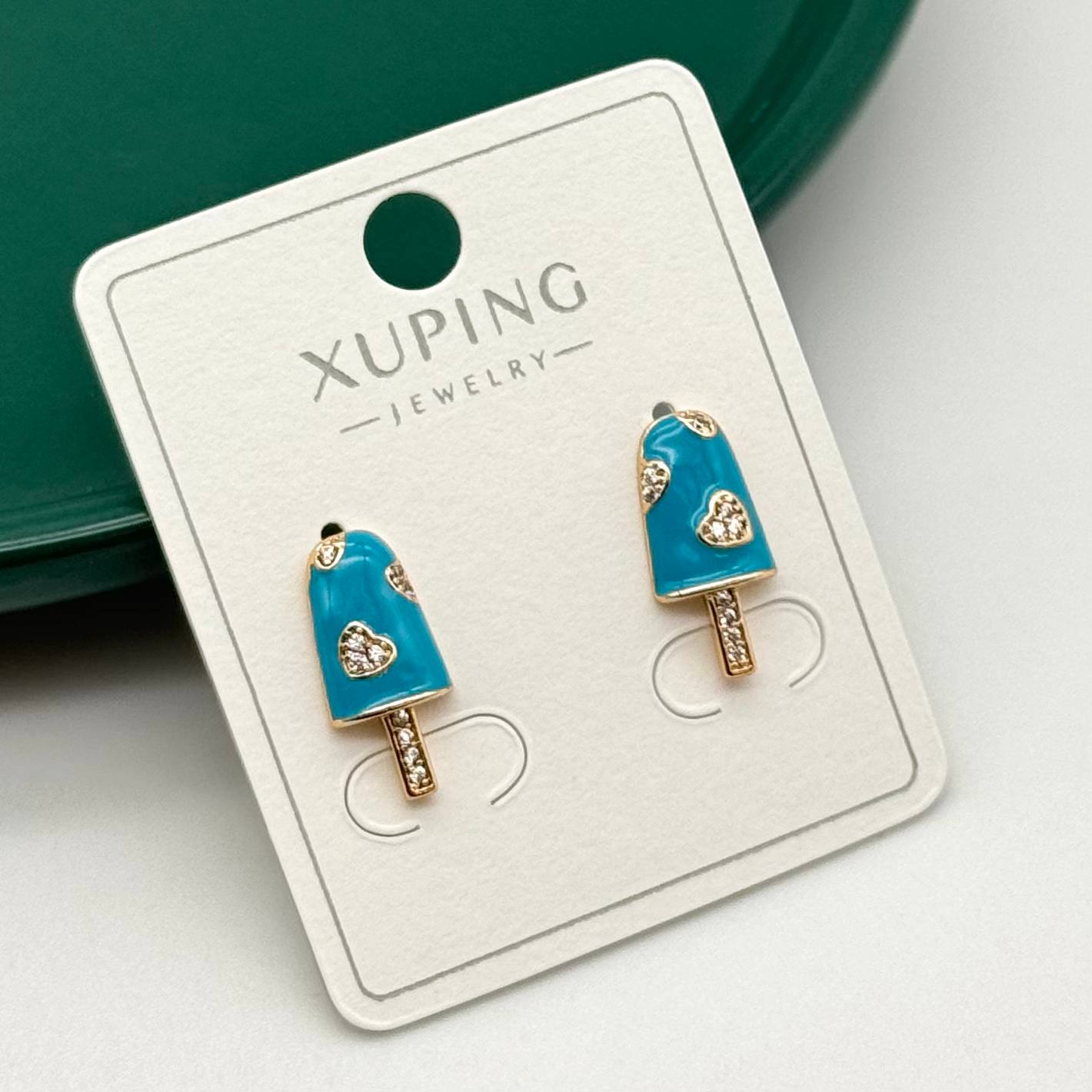 گوشواره میخی مینا کاری طرح بستنی آبی نگیندار برند ژوپینگ کد ۲۴۲