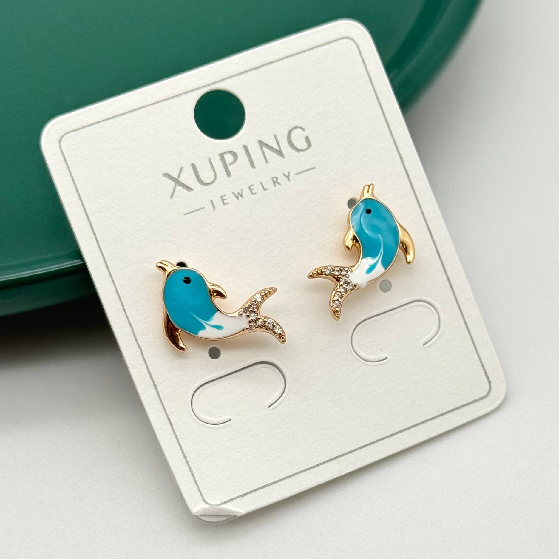 گوشواره میخی میناکاری طرح دلفین آبی برند ژوپینگ کد ۲۴۳