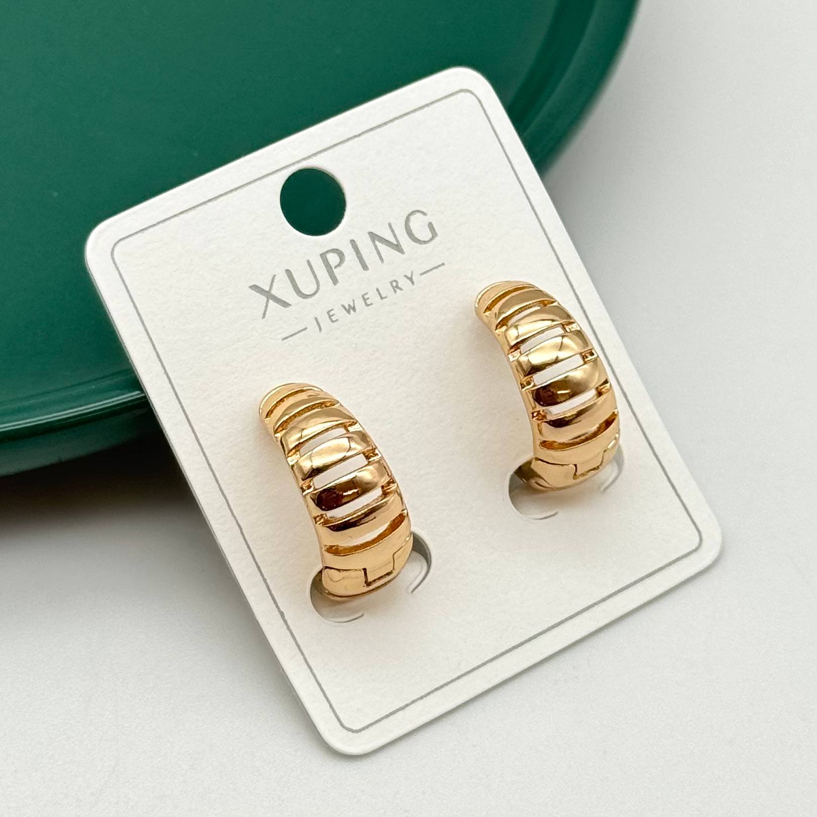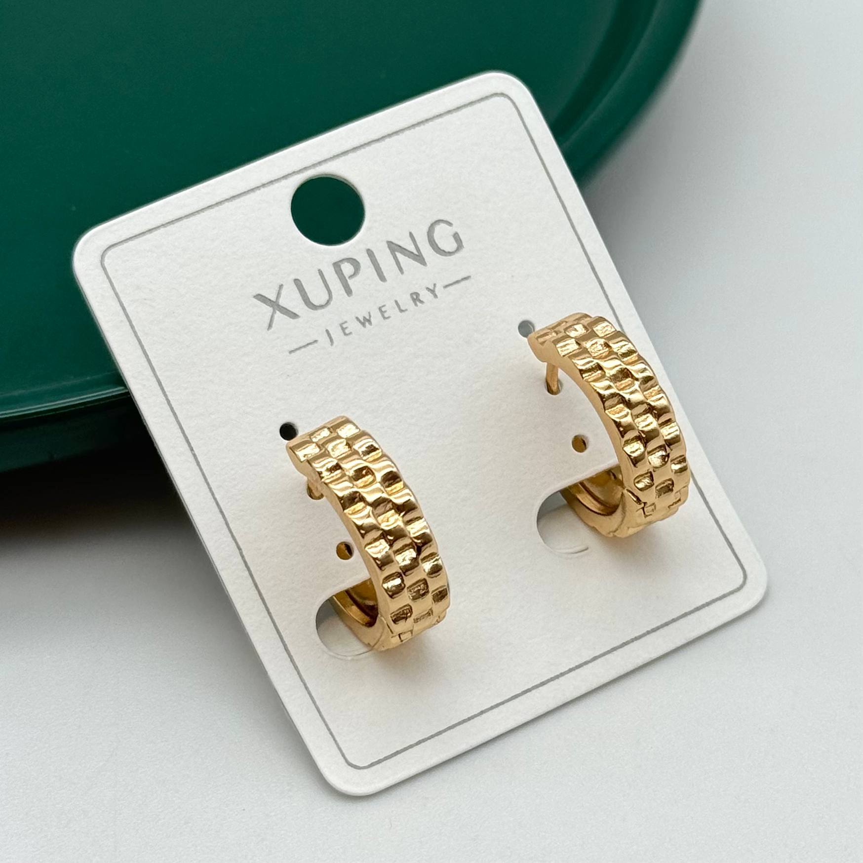 گوشواره حلقه طرح بافتی نگیندار برند ژوپینگ کد ۱۵۲