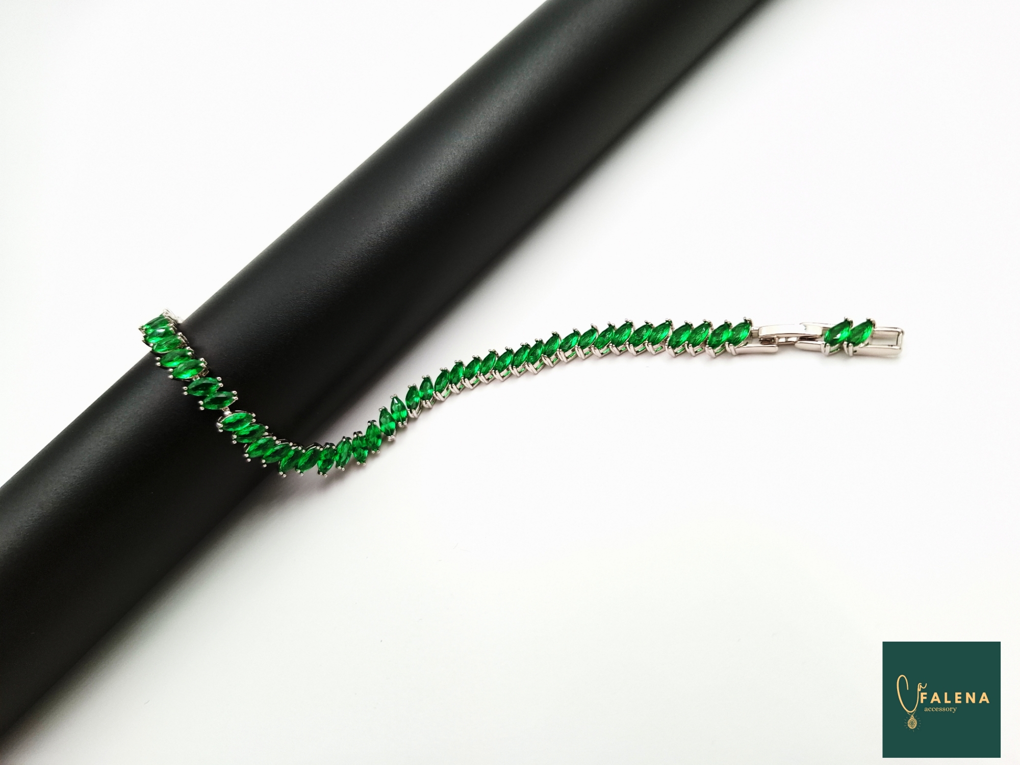 دستبند فول نگین سبز برند ژوپینگ کد ۲۲۰ ارسال سریع با پست پیشتاز ضد حساسیت با آبکاری طلا طول ۱۹ سانت (قابل تنظیم)