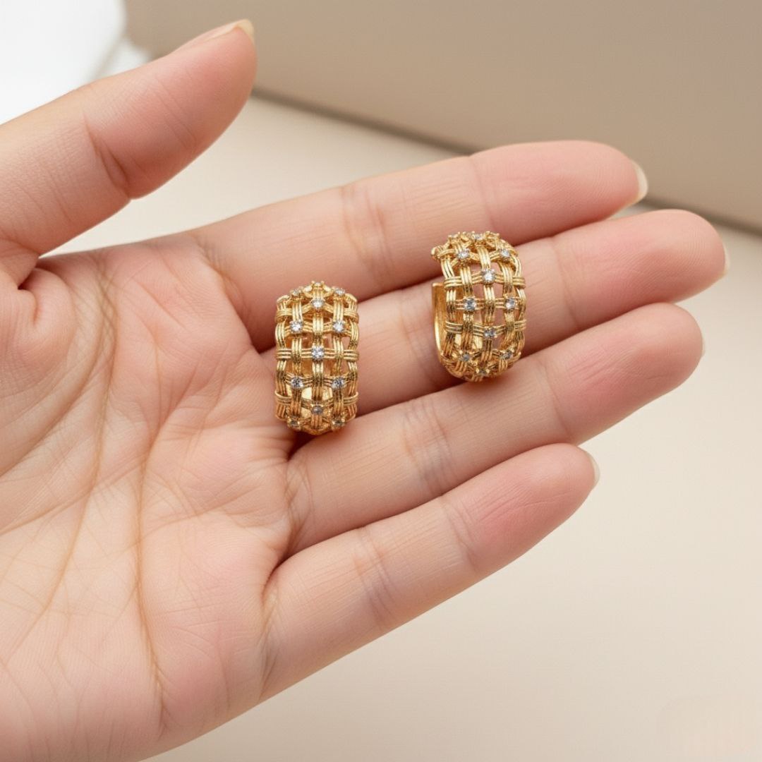 گوشواره مدل حصیری نگینی برند ژوپینگ کد ۲۳۳ ضد حساسیت با آبکاری طلا ارسال سریع به سراسر کشور با پست پیشتاز