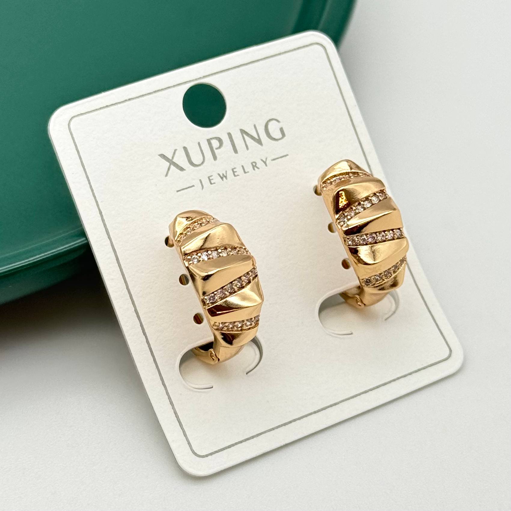 گوشواره حلقه ای نگینی طرح طلا برند ژوپینگ کد ۲۳۴ ضد حساسیت با آبکاری طلا ارسال سریع با پست پیشتاز به سراسر کشور مدل حلقه ای
