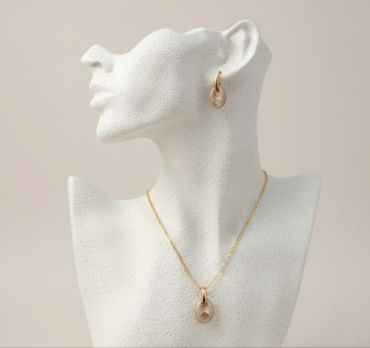 این نیمست ظریف و درخشان از برند معتبر ژوپینگ (XUPING)، شامل یک جفت گوشواره و یک آویز گردنبند است. طراحی این ست الهامگرفته از نمادهای کلاسیک با جلوهای مدرن است که سطح آن به طور کامل با نگینهای ریز اتمی (میکروستینگ) با کیفیت بالا پوشانده شده است.