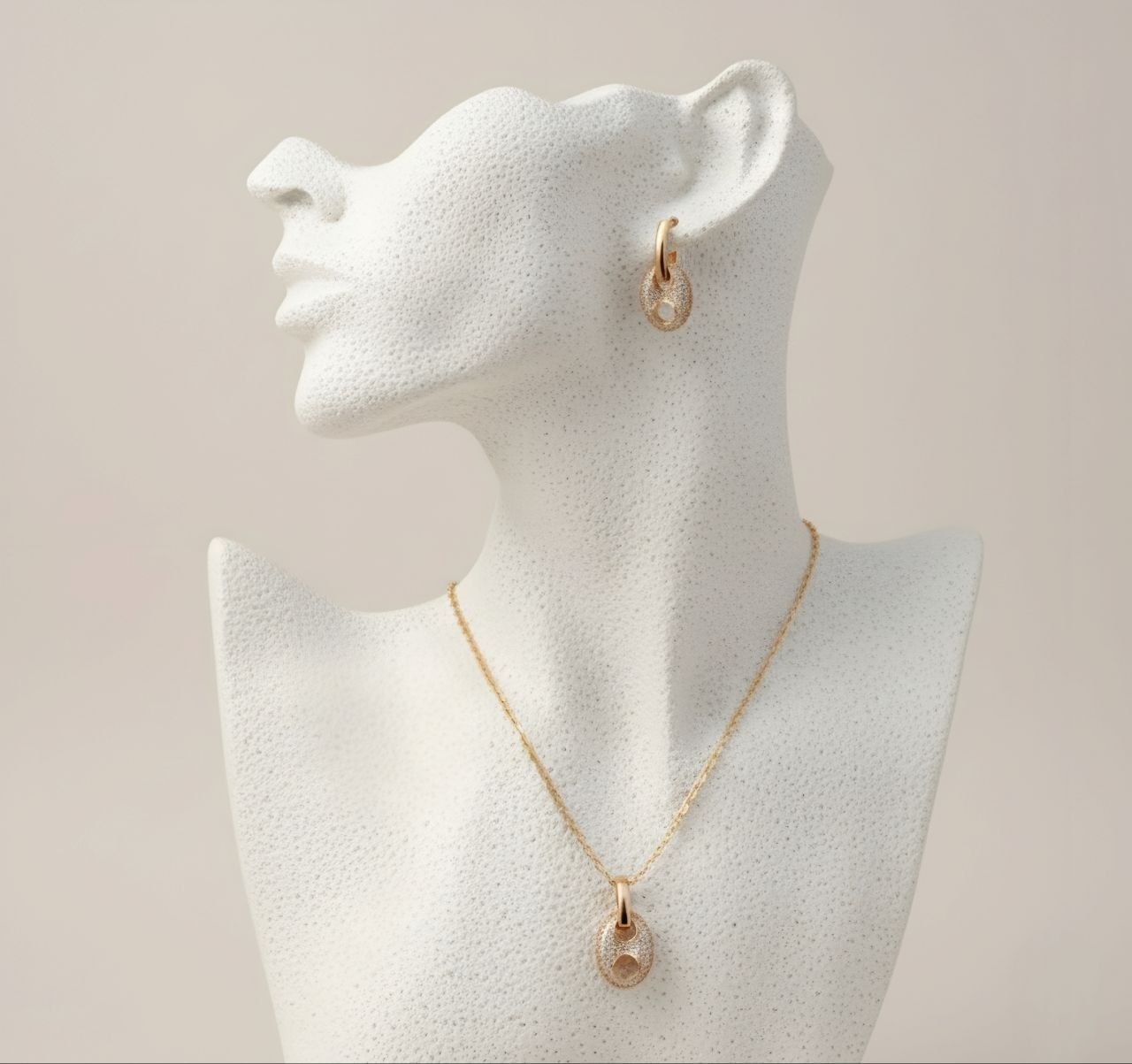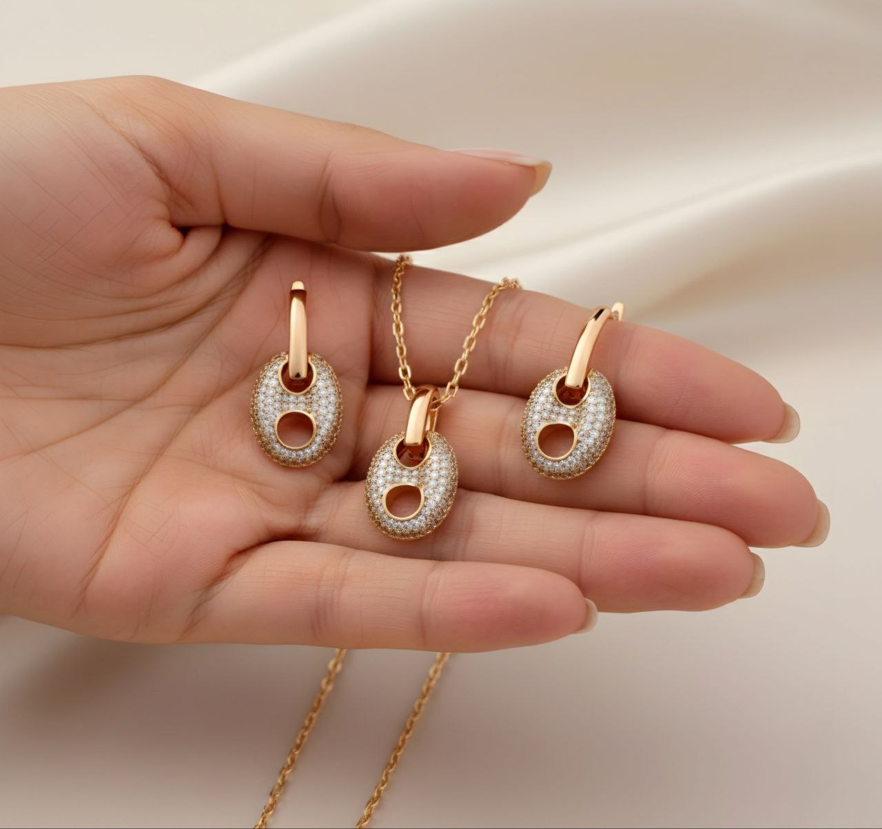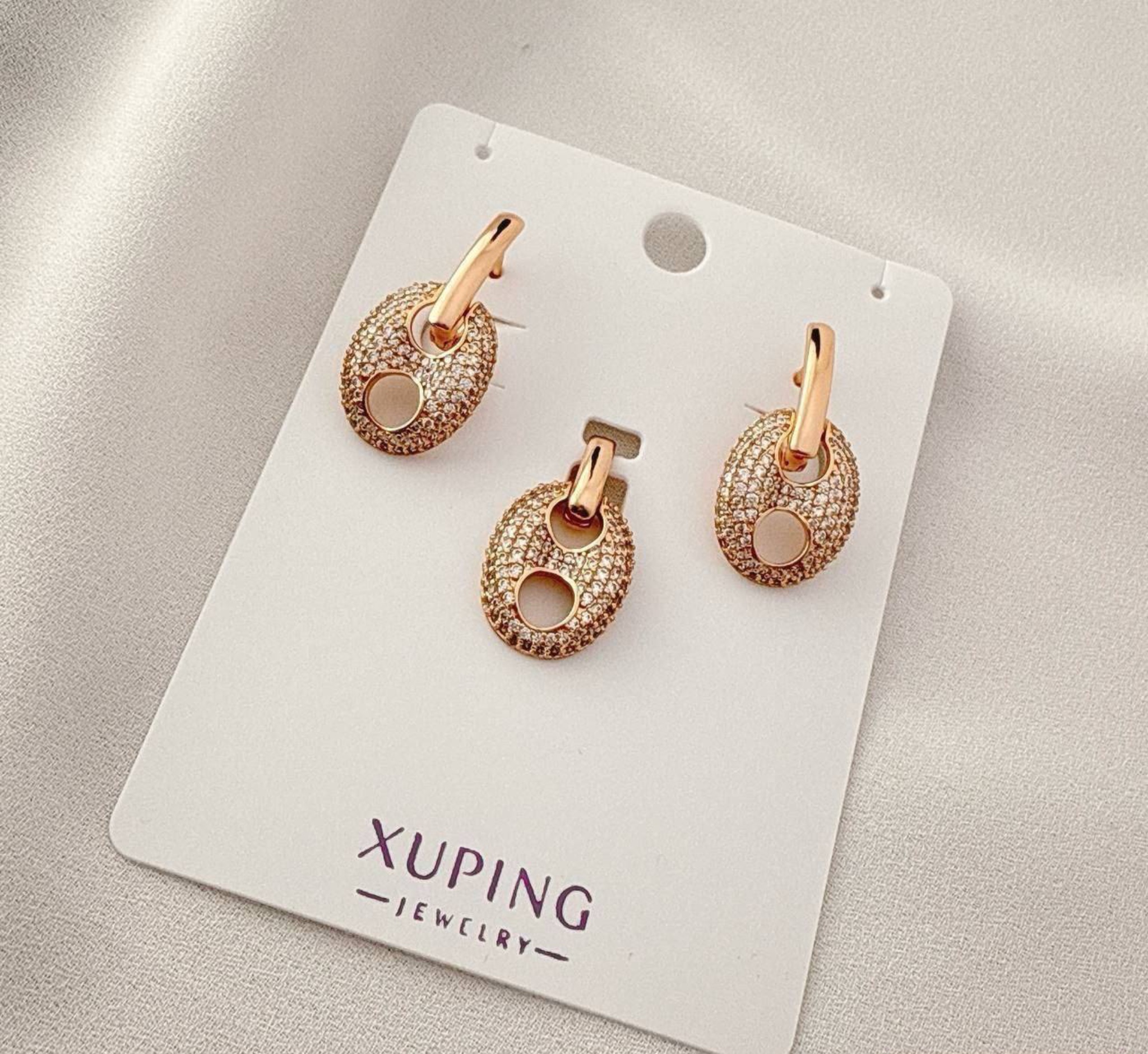 این نیمست ظریف و درخشان از برند معتبر ژوپینگ (XUPING)، شامل یک جفت گوشواره و یک آویز گردنبند است. طراحی این ست الهامگرفته از نمادهای کلاسیک با جلوهای مدرن است که سطح آن به طور کامل با نگینهای ریز اتمی (میکروستینگ) با کیفیت بالا پوشانده شده است.
