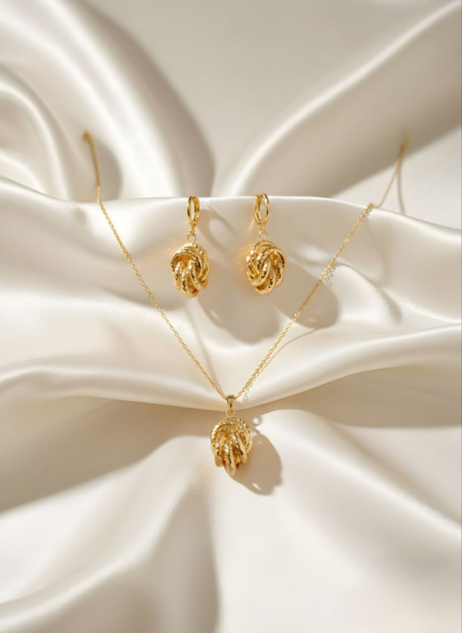 • ست شامل: یک عدد گردنبند با زنجیر ظریف و یک جفت گوشواره آویز مدل حلقهای.