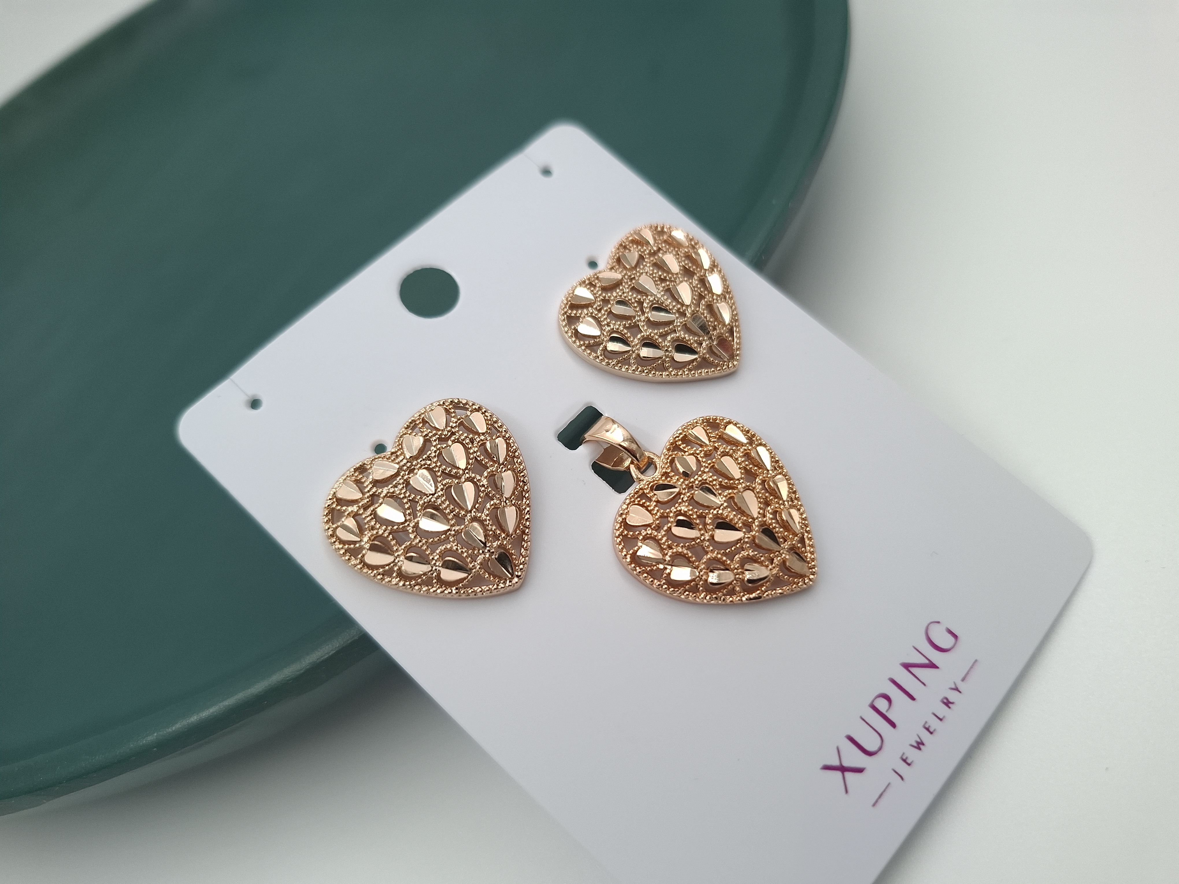این نیمست ظریف از برند معتبر ژوپینگ، شامل یک جفت گوشواره میخی و یک پلاک طرح قلب است. طراحی این محصول با بهرهگیری از تکنولوژی تراش الماسه انجام شده که درخشش فوقالعادهای (مشابه طلا) به آن میبخشد.