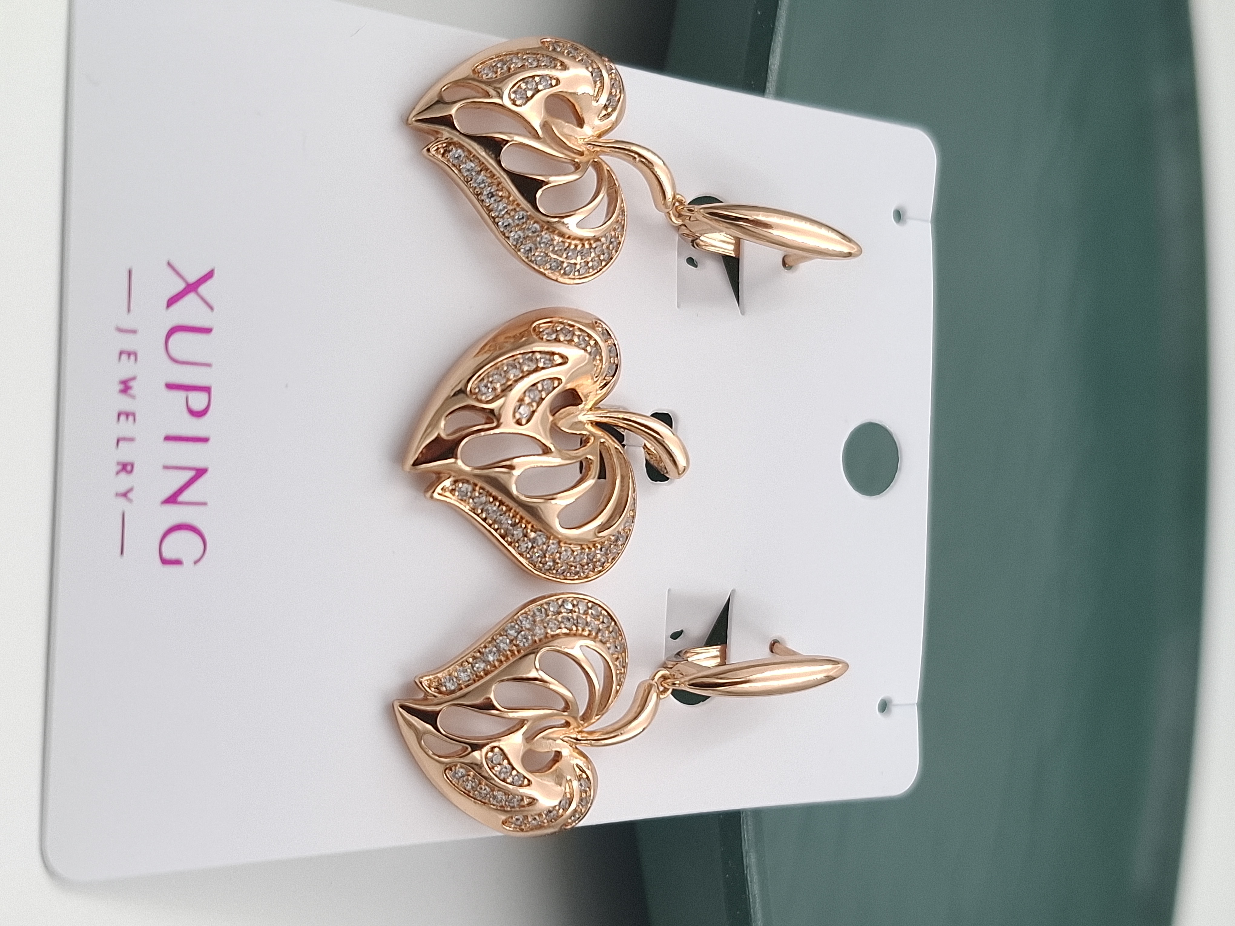 این نیمست از برند معتبر ژوپینگ (Xuping) با آبکاری طلای ۱۸ عیار ، ترکیبی از ظرافت و درخشش را به شما هدیه میدهد. طرح این ست الهام گرفته از برگهای استوایی و فرم قلب است که با نگینهای ریز مخراجکاری شده (بدون ریزش) تزئین شده است.