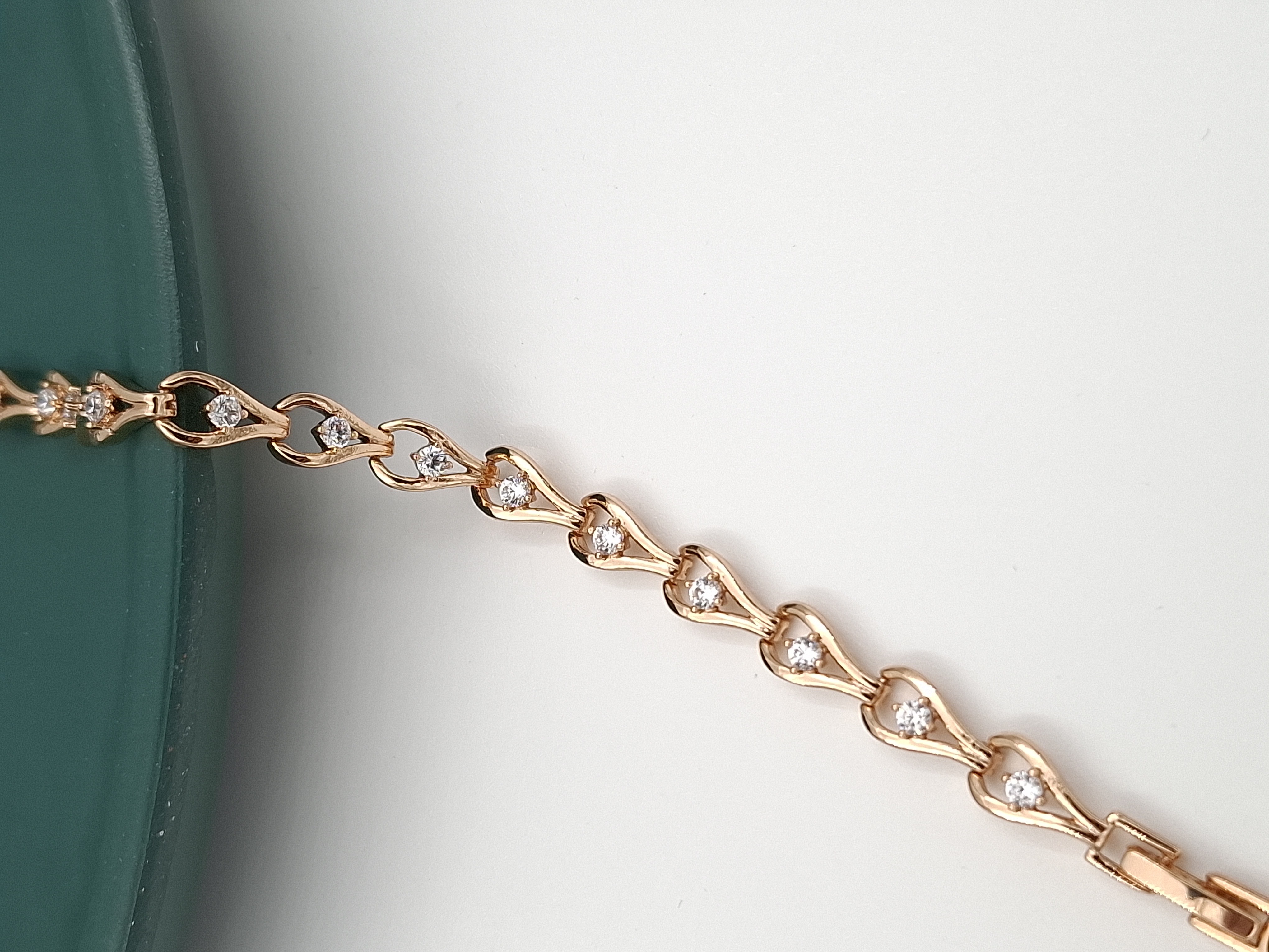 این دستبند از برند معتبر ژوپینگ (Xuping) با طراحی منحصربهفرد "اشکهای متصل" ساخته شده است. هر قطعه از این زنجیر با یک نگین درخشان مخراجکاری شده که جلوهای شبیه به جواهرات طلا دارد. از ویژگیهای بارز این محصول میتوان به موارد زیر اشاره کرد: